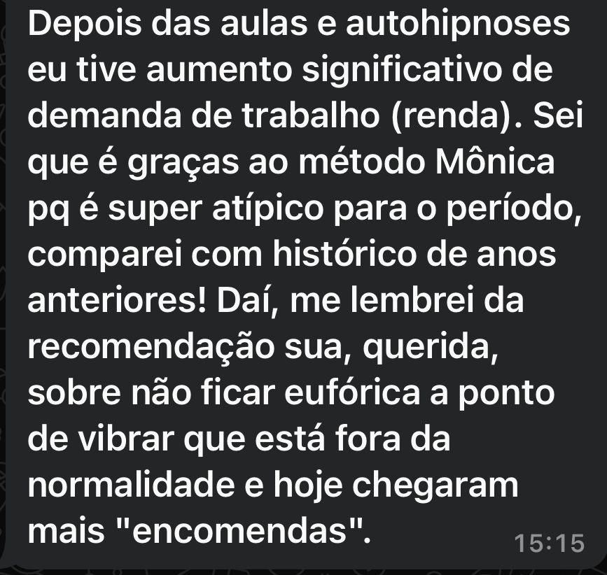Lembrando que o atendimento individual da Mônica é realizado em formato de pacotes de acompanhamento por meses, com investimento a partir de R$ 3.997, mediante disponibilidade de agenda.